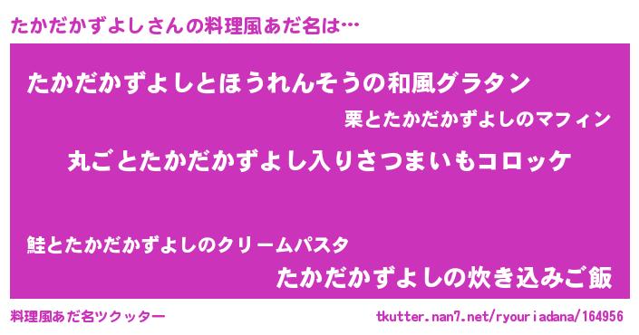 | ヘコむあだ名 | 『たかっちょ』『たかだかずよし(爆)』 |