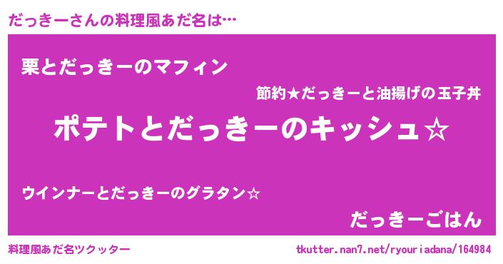 | 男性向けラノベタイトル風あだ名 | 『ダンジョンにだっきーを求めるのは間違っているだろうか』 |
