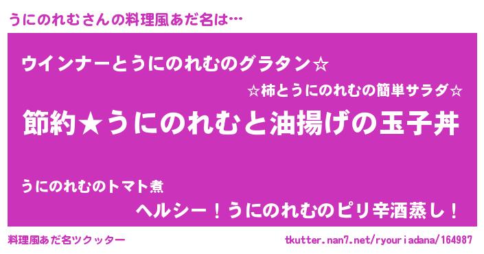 | 意味不明あだ名 | 『ペロリンうにのれむ』『自称うにのれむ』 |
