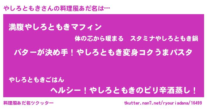 | ヘコむあだ名 | 『やしろともき(震え声)』『レバニラ』 |