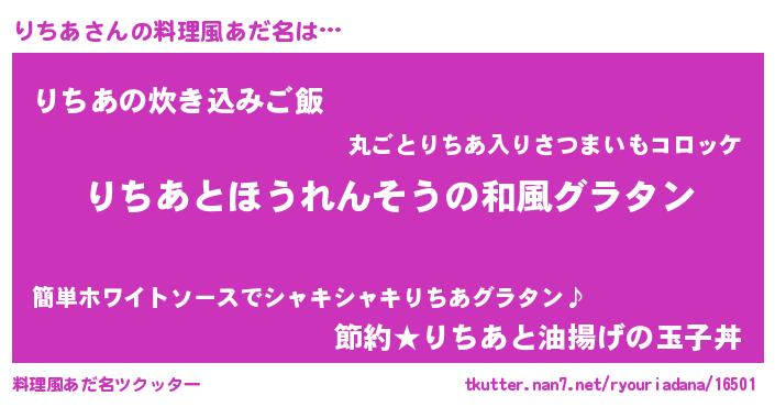 | 男性向けラノベタイトル風あだ名 | 『転生したらりちあだった件』 |