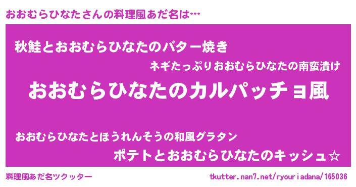 | ヒーロー風カッコイイあだ名 | 『仮面オオダー』『ネオオオムラヒナタ』 |