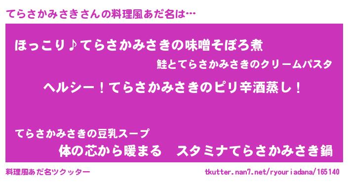 | 男性向けラノベタイトル風あだ名 | 『Re:てらさかみさきから始める異世界生活』 |