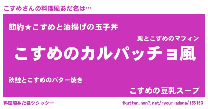 | 男性向けラノベタイトル風あだ名 | 『魔弾の王とこすめ』『こすめの憂鬱』 |