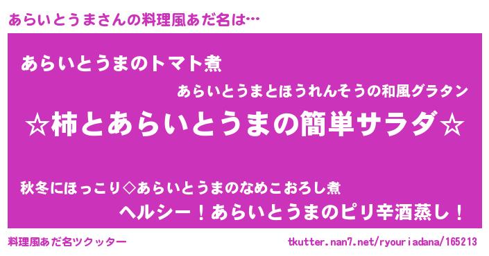 | 欧米人風あだ名 | 『あらいとうま・ステッグマイヤー』 |