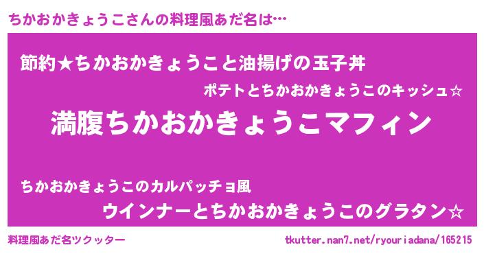 | ヘコむあだ名 | 『ちかおかきょうこ(震え声)』『ちかにゅー』 |