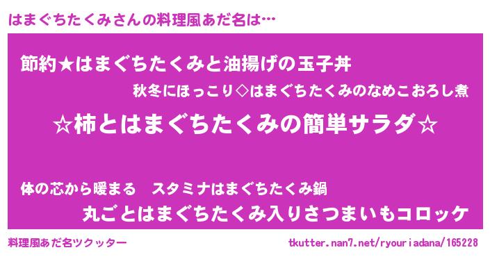 | 恥ずかしいあだ名 | 『プリティーはまぐちたくみ』『はまちん』 |
