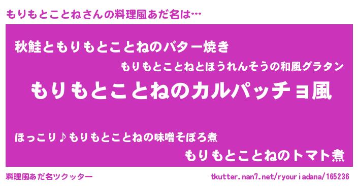 | ヒーロー風カッコイイあだ名 | 『仮面モリダー』『ネオモリモトコトネ』 |