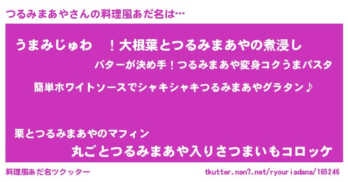 | 胡散臭い通販商品みたいなあだ名 | 『全米が絶賛したサプリメント…その名も「つるみまあや」』 |