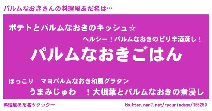 | 意味不明あだ名 | 『めかぶ科パルムなおき属』 |