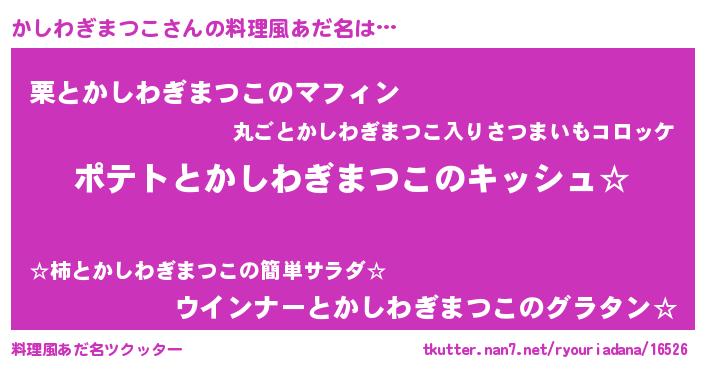 | ポケモン風あだ名 | 『ヒカシワギマツコ』『カシゴンZ』 |