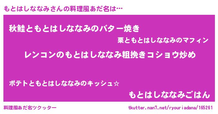 | 意味不明あだ名 | 『自称もとはしななみ』 |