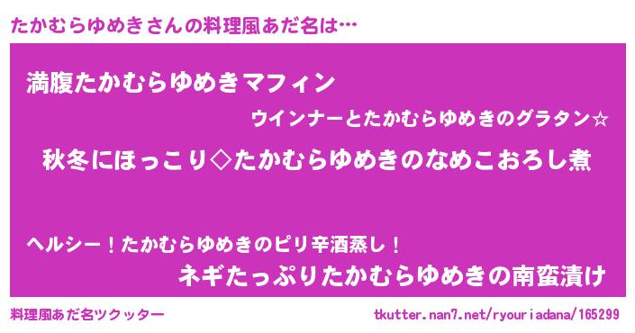| ヘコむあだ名 | 『たかむらゆめき(笑)』『たかふぇ~』 |