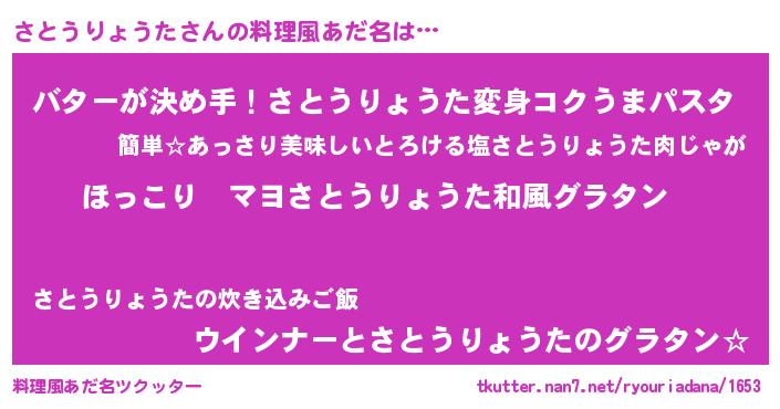 | ヒーロー風カッコイイあだ名 | 『仮面サトダー』『ネオサトウリョウタ』 |