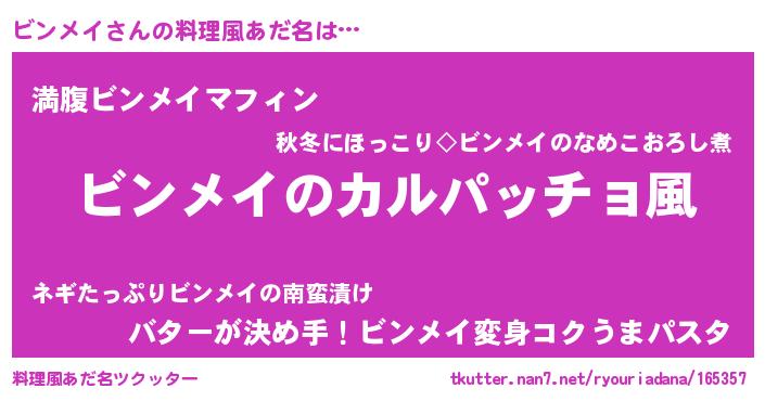 | ヘコむあだ名 | 『ビンメイ(遠い目)』『ビンにゅー』 |