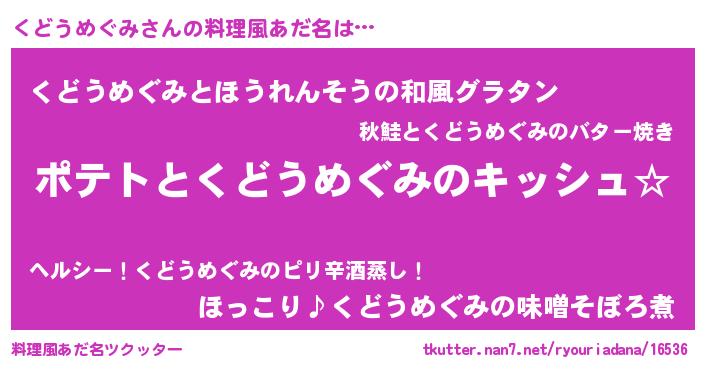 | 胡散臭い通販商品みたいなあだ名 | 『伝統あるサプリメント…その名も「くどうめぐみ」』 |