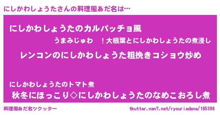 | 肩書あだ名 | 『にしかわしょうた閣下』 |