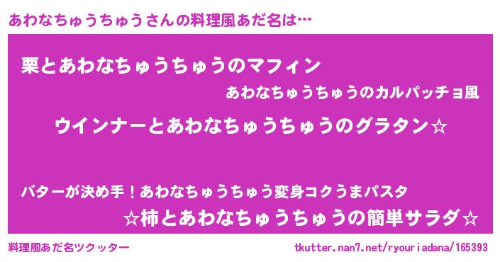 | 欧米人風あだ名 | 『あわなちゅうちゅうクリステル』 |