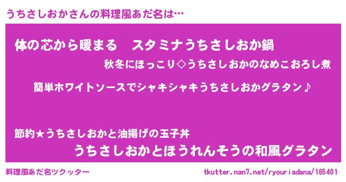 | 胡散臭い通販商品みたいなあだ名 | 『全米が絶賛したサプリメント…その名も「うちさしおか」』 |
