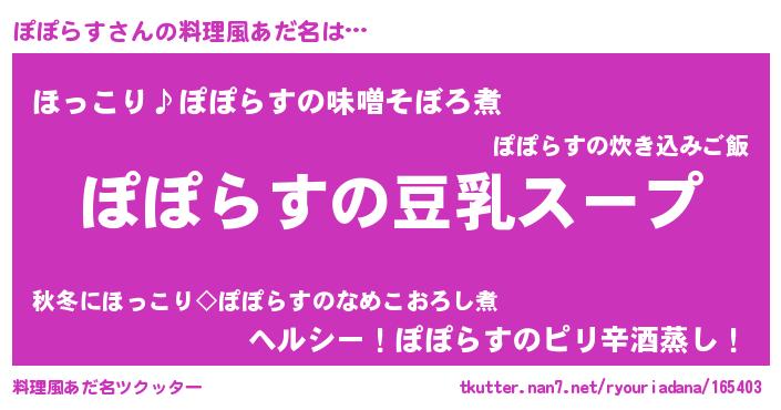 | 意味不明あだ名 | 『とにかく怪しいぽぽらす』 |