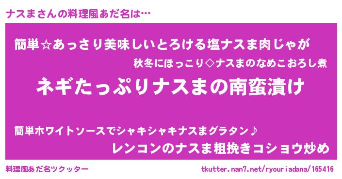 | 意味不明あだ名 | 『ペロリンナスま』『永久保存ナスま』 |