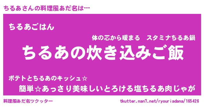 | ヘコむあだ名 | 『ちるあ(笑)』『牛乳』『ちるっ子』 |