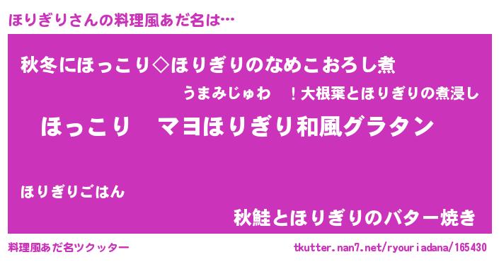 | 胡散臭い通販商品みたいなあだ名 | 『あなたにだけ特別に提供する限定10本のレアな日本酒…その名も「ほりぎり」』 |