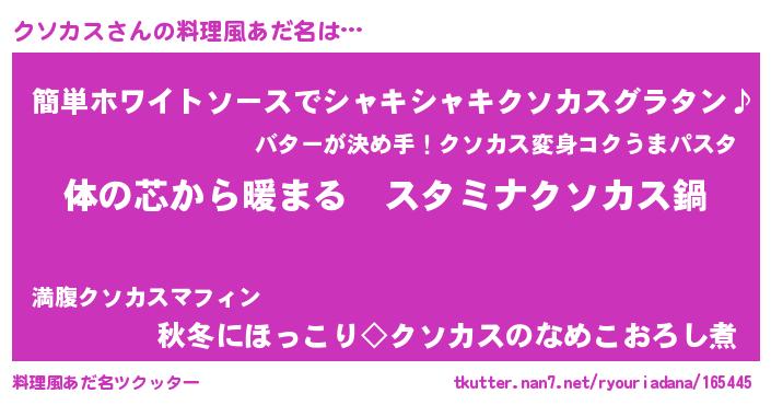 | 意味不明あだ名 | 『クソカスフォーエバー』『自称クソカス』 |