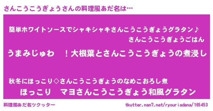 | ポケモン風あだ名 | 『サンコダネ』『ヒサンコウコウギョウ』 |