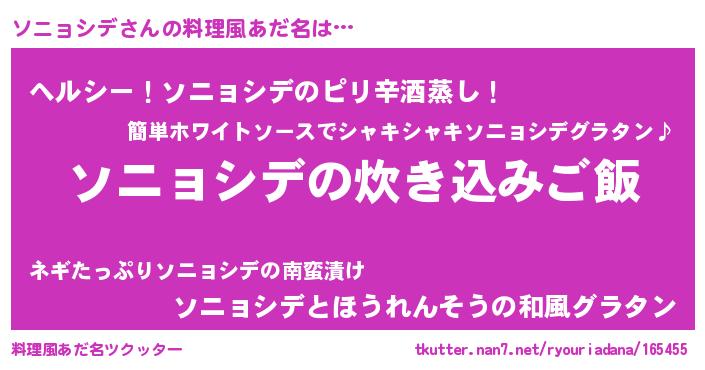 | ヒーロー風カッコイイあだ名 | 『最強戦士ソニョシデ』『幻影騎士ソニ』 |