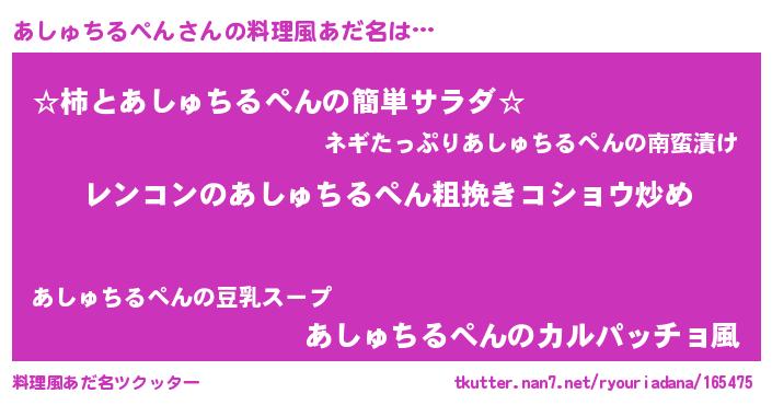 | 意味不明あだ名 | 『自称あしゅちるぺん』 |