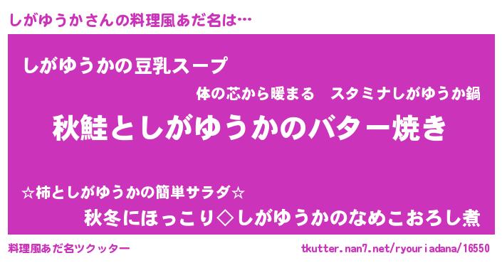 | ヘコむあだ名 | 『しがゆうか(笑)』『しが太郎』 |