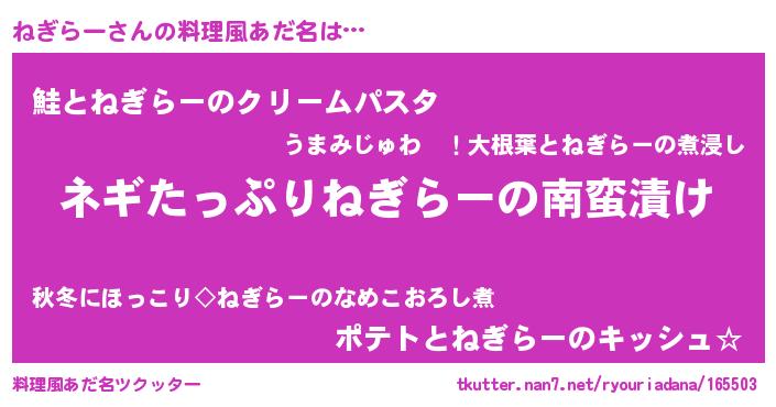 | 意味不明あだ名 | 『ペロリンねぎらー』『永久保存ねぎらー』 |