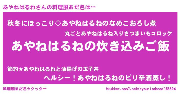 | 意味不明あだ名 | 『自称あやねはるね』 |