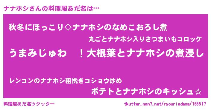 | ポケモン風あだ名 | 『ナナホダネ』『ナナゴンZ』 |