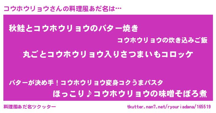 | 男性向けラノベタイトル風あだ名 | 『この素晴らしい世界にコウホウリョウを!』 |