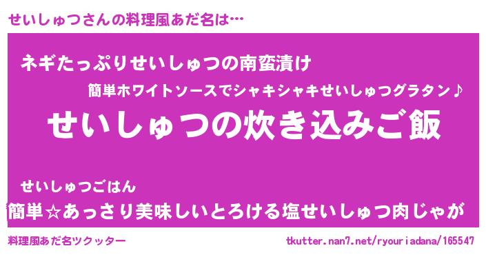 | ヘコむあだ名 | 『せいっふぃ~』『せいしゅつ(遠い目)』 |