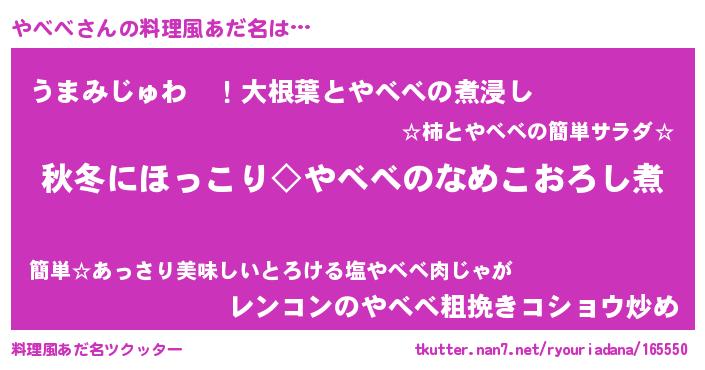 | ヘコむあだ名 | 『酢こんぶ』『やべべ(笑)』『やべを』 |