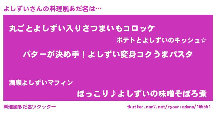 | ヘコむあだ名 | 『よしにー』『よしお』『なまこ酢』 |