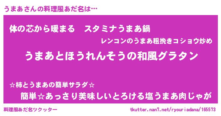 | 意味不明あだ名 | 『ヨモギ科うまあ属』『永久保存うまあ』 |