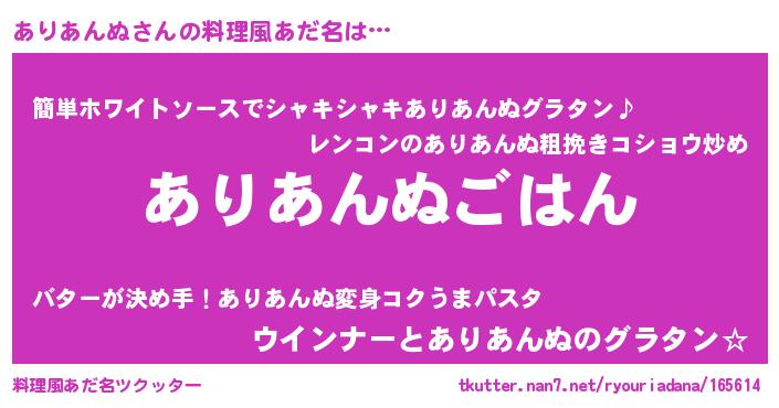 | 胡散臭い通販商品みたいなあだ名 | 『信頼と実績のサプリメント…その名も「ありあんぬ」』 |