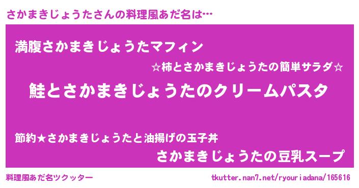 | 男性向けラノベタイトル風あだ名 | 『ノーゲーム・ノーサカマキジョウタ』 |
