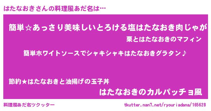 | 女子向けラノベタイトル風あだ名 | 『はたなおき様がみてる』 |