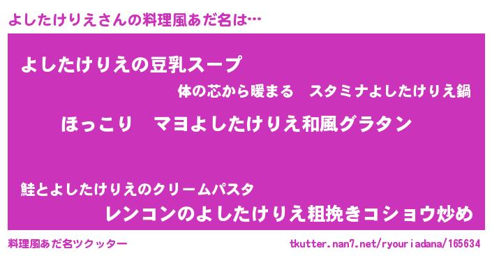 | 意味不明あだ名 | 『住所不定無職よしたけりえ(39歳)』 |