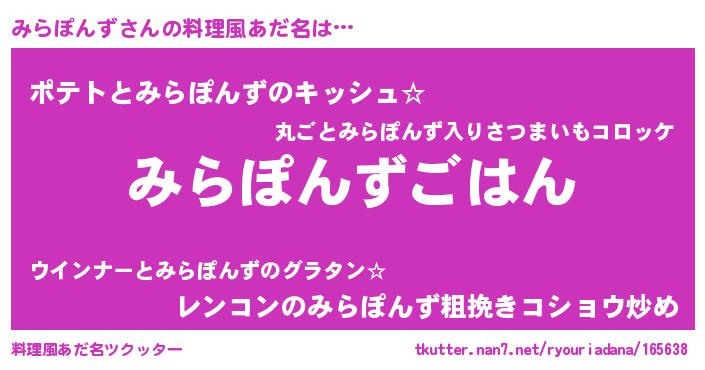 | 胡散臭い通販商品みたいなあだ名 | 『信頼と実績のサプリメント…その名も「みらぽんず」』 |