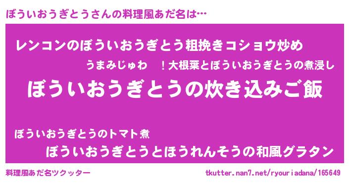 | 胡散臭い通販商品みたいなあだ名 | 『芸能人もオススメするアガリクス…その名も「ぼういおうぎとう」』 |