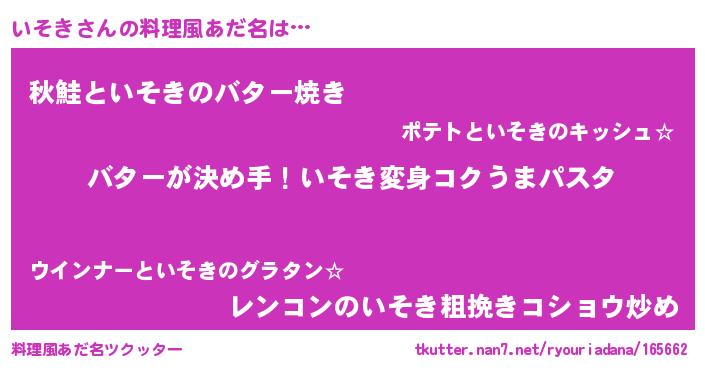 | 意味不明あだ名 | 『眠気覚ましガムいそき味』『自称いそき』 |