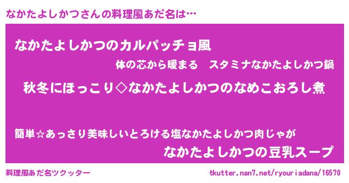 | 意味不明あだ名 | 『住所不定無職なかたよしかつ(65歳)』 |