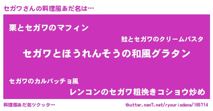 | 意味不明あだ名 | 『なめこ科セガワ属』『自称セガワ』 |