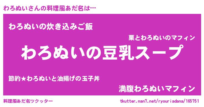 | 女子向けラノベタイトル風あだ名 | 『わろぬいは平凡を望む』 |